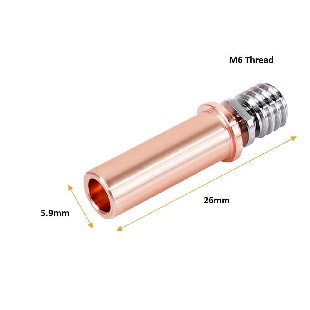 The combination of the Copper (Cu) body and Titanium (Ti) shoulder and thread improves the thermal properties of the hotend, lessening heat creep and the potential for jams.