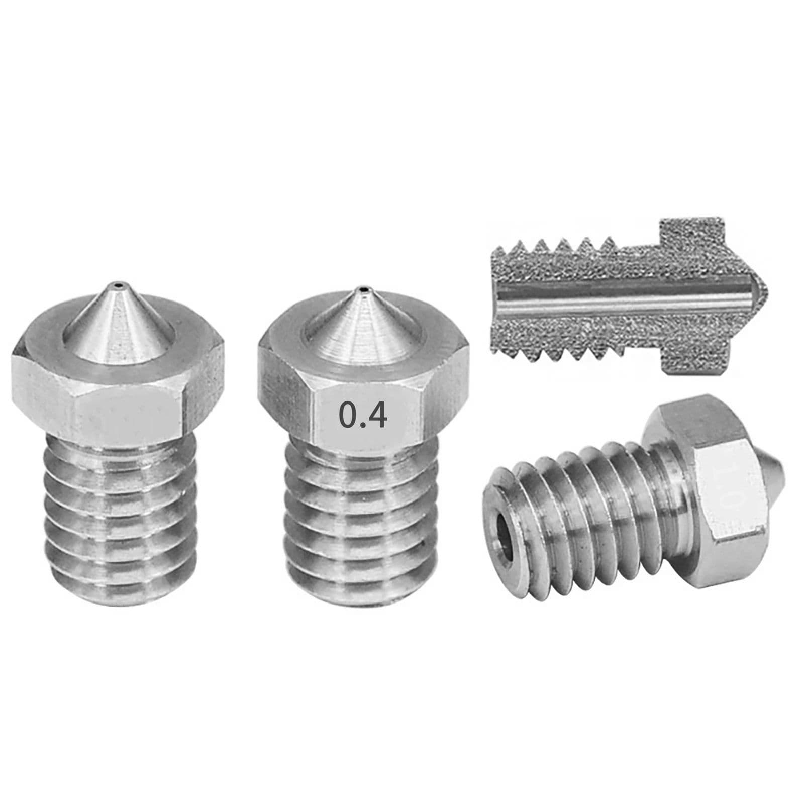 A High quality stainless steel nozzle for improved printing and wear resistance. Stainless Steel nozzles are recommended for food safe applications. Brass is considered unsafe as it contains lead,